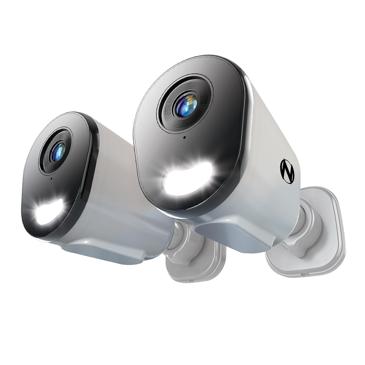 4k Resolution. 2 add on cameras. Wired add on cameras. 2 Wired add on spotlight cameras with preset voice alerts and built-in camera siren. 100ft. night vision. Built-in spotlights. Voice alerts with siren. Smart detection technology. Wired BNC. Requires compatible night owl DVR - sold separately. America’s no 1 wired security camera brand (Camera connects to the DVR (sold separately) using the provided wired BNC cable) (Source: The NPD Group Inc. Retail tracking service US security cameras, camera connection. Type: Wired only, January 2018-February 2021 combined). No monthly fees. English. 4k Wired cameras: 2X wired spotlight cameras. 1x camera power adapter. 1x4-way power splitter. 2x 60ft video/power camera cables. 2x mounting hardware and screw packets. Only compatible with select night Owl DVRs. Not for stand alone use. Wired add on Cameras: Enjoy these features with the use of a compatible Night Owl DVR (/required). Smart Detection Technology: Receive human detection, facial capture and vehicle alerts to your smart device. Record and flag events for quick and easy access. Easily filter to find who, what, when and where. Preset Voice Alerts with Built-in Camera Siren: Send preset voice messages from the app to the camera. Quickly alert and intruder or guest. Ward off trespassers with loud siren. Built-in Spotlights: Powerfully bright spotlights. Human motion activated. Put intruders on notice. Wired BNC cameras. Voice alerts with siren. Wide viewing angle. Outdoor housing. Secure wired connection: Hardwired connection feeds camera with both video signal and power through one cable. Provides uninterrupted viewing and recording with no delays. DVR sold separately. Wired camera specifications: Wired Camera Video / Audio: Signal: AHD. Resolution: 4k (8 mp) -3840 x 2160). Lens mm / viewing angle: 4 mm / 100. Audio enabled: 1-way audio (speaker)-preset voice messages/siren. Length of night vision: 100ft. L2 color boost technology: Yes. Number of spotlight LEDs: 1 Per camera. General (wired camera): Weather-resistant rating: IP-65. Operating temperatures: -4 degrees F to 140 degrees F. Weight (product only): Approx. 0.35 lbs. Dimensions (l x w x h): Approx. 6 in x 3 in x 3 in. Wired camera cable: Type of cable: BNC coaxial. Length of cable: 60ft. Per camera. Maximum run length of cable. 160 ft. Video connection type: BNC. UL listed: Yes (CL2). For more information, refer to the footnotes on the bottom of packaging. Disclaimer: Certain uses, publication and/or distribution of video/audio recordings from security cameras and/or audio devices are prohibited or restricted by federal, state and local laws When enabling and/or using audio recording features with your hidden security camera, be sure to comply with the laws in your country, state and locality IOS is a trademark or registered trademark of Cisco in the US. and other countries and is used under license Phone. iPad, Mac and Mac Os X are registered trademarks of Apple Inc Windows 7. Windows 8 and Windows 10 are registered trademarks of Microsoft Corporation n the United States and or other countries Google Google Home, Chrome cast and related marks and logos are trademarks of Google LLC. www.NightOwlsp.com. www.p65warnings.ca.gov. For more information, refer to the footnotes on the bottom of packaging. Night Owl Designed in the USA. Cameras made in Vietnam. Cables and power adapters made in China.