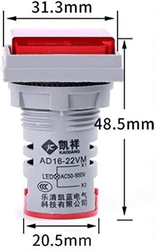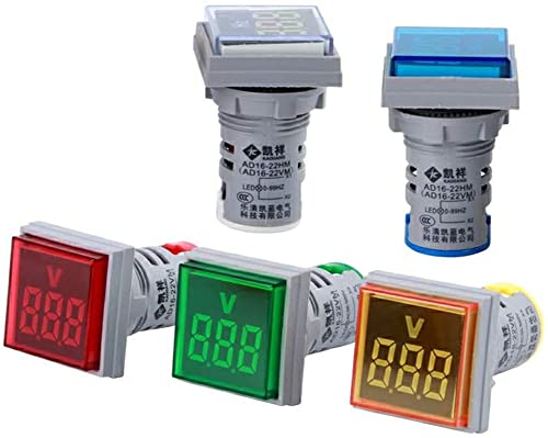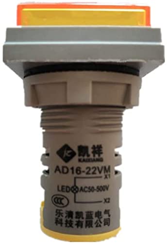 Digital Display AC Voltage Indicator, 22mm Square Head LED Voltage Tester AC50~500V Voltmeter Monitor (Yellow)