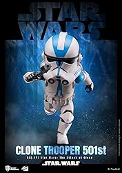 - From Beast Kingdom North America. Beast Kingdom is excited to present the Egg Attack Action Star Wars Series' Clone Trooper 501st from Star Wars Episode III. The 6-inch action figure is painted with expert technique, perfectly representing the texture of Clone Trooper 501st's blue and white armor and weapons (DC-15D blaster rifle and DC-15A blaster pistol). The figure also features an interchangeable hand with transmission hologram effects just like movie.