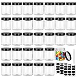 8OZ 32PCS Plastic Jars with Lids Empty Slime Cosmetics Containers Clear Gift Round PET Cream Jars with Black Lids Pen Labels for Kitchen Storage Spices Dry Food Body Butter Slime Making
