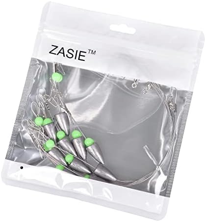 Aparejos de pesca ZASIE Carolina, líderes de pesca de acero de 12 pulgadas con peso de bala, aparejos Carolina premontados con peso de pesca de 1/6oz, 1/4 oz, 1/2 oz, 10 piezas