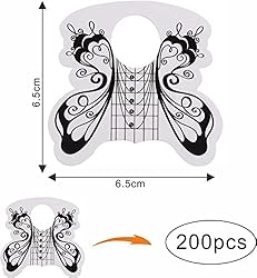 VNC 200 Pcs Nail Form Guide Acrylic Tip Extension Forms Black And White Color Sticker Rroll Manicure Tool for Acrylic UV Gel Nail Art Tips Butterfly Shape Long Nail Extension Bluider Forms
