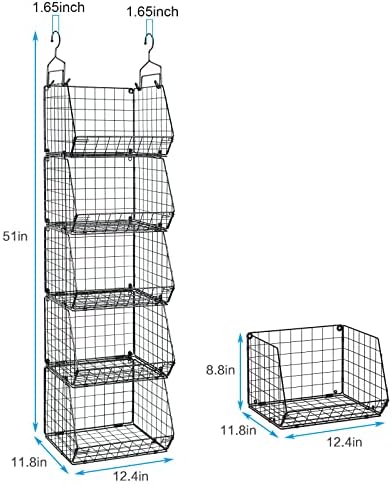 - Perfect Storage Organization: 5 tier wide open wire basket allows you to easily view, put in and take off more easily. X-cosrack metal basket hanging shelves provide a great storage solution for any room in the home. Organize clothes accessories and toys in your closet, lotions in your bathroom, containers in your pantry, office supplies, mails in your office, fruit&vegetable&spices in your kitchen.