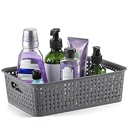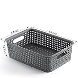 PRODUCT CONFIGURATION: 8 woven pattern plastic baskets, gray. Dimensions:10.6” L x 7.2” W x 3.2” H, basket use small holes design helping ventilation, better organization and storage items. DURABLE and SAFE: This plastic material is high-quality, recyclable, flexible, and not easily been damaged when dropped from high places, which making the baskets durable and sturdy, keeping for long-term use. And it is totally BPA-free, please use it with confidence. MULTI-PURPOSE: These ideal-sized storage baskets are great for storing home supplies in all kinds of platforms in your house like closets, cabinets, shelves and countertops. They are super functional and practical in various rooms and places, such as kitchen, pantry shelves, bedrooms, bathrooms, living rooms, laundry rooms, offices, craft rooms, play rooms and garages. EASY TO USE: The storage containers can be very convenient to organize items, organizing ability very excellent, can also be laminated when not needed, it will not take up extra space. The basket has hollow handles, facilitating the movement of the basket, and improve organization efficiency, use them to organize your items will be a pleasure. 100% SATISFIED SERVICE: If the plastic baskets you received was damaged or imperfect or you are not 100% satisfied, please simply contact us, we will offer a satiafactory solution