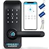 Cerradura de puerta inteligente con manija: Cerradura de entrada digital sin llave Kucacci para puerta principal - Teclado de huellas digitales inteligente Dnob - Genera código de acceso remotamente - Control por aplicación - Fácil instalación(Negro)