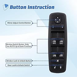 - AiYiGu branded door lock window switch manufactured to be identical in appearance and operation to your model switch. They use high quality ABS material to make their surface very smoothly without burrs. No any program required, easy install, no easy to get stuck when it working. 【Compatibility】:● Compatible with 2011 2012 2013 2014 2015 2016 Dodge Charger● Compatible with 2011 2012 2013 2014 2015 2016 2017 Dodge Journey● Compatible with 2016 2017 2018 Dodge Ram ● Compatible with 2015 2016 2017 2018 2019 2020 2021 Jeep Cherokee● Compatible with 2011 2012 2013 Jeep Grand Cherokee ● Compatible with 2015 2016 2017 Chrysler 200 CS● Compatible with 2011 2012 Chrysler 300 CS 【Replaces Part Numbers】:68139805AA68139805AB68184802AC56046823AC 【Specification】:➤Material: ABS plastic➤Pins: 3+8 pins➤Features: 2 AUTO➤Position: Front left driver side➤Fitment Type: Directly plug and play style➤Package Content: 1 x power window switch + 1 x switch removal bar 🚗【Tips Before You Buy】This window lifter had 2 "AUTO" symbol, it means auto up and down control the front left driver side and front passenger side window on your vehicle. You should see 2 "AUTO" & 3+8 pins on your original switch when you do purchase. If single "AUTO" and pins not matched, it can't be available even if the model matched. Please verify with your current version before buying.