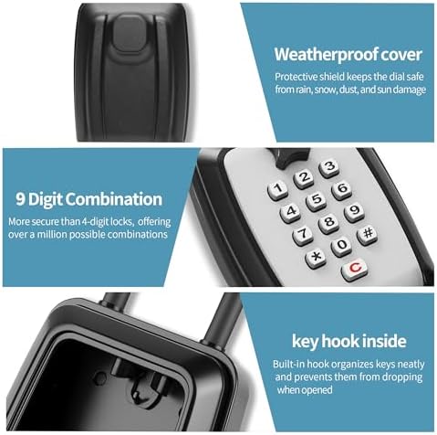 - 9 DIGIT COMBINATION LOCK: This security key safe box features a 9 digit combination, offering stronger protection than standard 4 digit locks. With over 1 million possible combinations, it helps prevent unauthorized access and keeps your keys and valuables safe