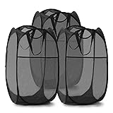 TECHMILLY Collapsible Mesh Pop Up Laundry Hamper with Sturdy Handles and Side Pocket - Portable Foldable Clothes Baskets for Dorm, Bathroom & Travel Storage (Black, 3 Packs)