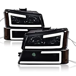 - PIT66 LED Headlight, Compatible with 03-06 Chevy Silverado 1500 2500 3500 HD Model/ Fit for 03-06 Avalanche 1500 2500(Fit No Cladding only) Smoky Lens Black Housing Amber Corner