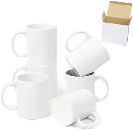 HomeVss 12-Pack 11oz Sublimation Blanks Mugs, White Ceramic Coffee Cups, Bulk Set with Gift Boxes, for Heat Press Designs