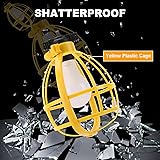 【Energy Saving】- 50FT 5 bulbs Included, 50 Watts, 4000 Lumen, 6500K Daylight, 400W Equivalent. The string lights is bright enough and ideal illumination anywhere. 【Weatherproof & Commercial Grade】- Outdoor string lights are IP65 waterproof listed, the insulation material can protect the strand from sun, wind, rain, snow. 16AGW wire flexible heavy-duty and durable.Yellow plastic cage protects the bulb from damage. 【Linkable Temporary Lighting】- Construction light is movable when and where it is needed, meanwhile it connect up to 10 sets(50bulbs) with maximum 750W power load. 【Wide Applicability】- This string lights is widely use in indoor and outdoor, They are commonly used for construction site, tunneling, carport, renovation, attic, family reunions, shipping container, garage. 【Products Services】- We are committed to products that bring joy and happiness to your life, you can contact us with any questions and we give you solutions.