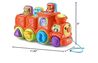 - All aboard for pop-up surprises! Join the animal friends on the Pop and Sing Animal Train™. Explore the fidget features on the wheels to work little fingers and experiment with cause and effect. Where are the animals hiding? Press, push, flip and twist to make them pop up. Surprise! Hear fun facts about the bear, koala and fox and where they live. Encourage crawlers to push the train along and see the smokestack flash to the music. When toddlers are ready to walk, they can pull it along to hear sound effects, fun phrases and songs. It’s time to roll! Choo-choo! Intended for ages 6–36 months. Requires 2 AAA batteries. Batteries included for demo purposes only. New batteries recommended for regular use.