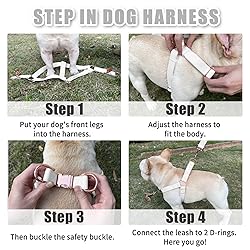 🐾 【Pick Eye-Catching Set For Your Pets】- [Note]This product contains metal, weight varies by size. Please check the size and corresponding weight before purchase to ensure suitability. Our Premium Harness has XS 130g / S 190g / M 290g / L 340g sizes. Combination design of Zinc Alloys Rose Gold Buckle & O-rings and Classy Leather makes it particularly Elegant. High-level appearance of this harness can instantly catch people's eye and make your adorable dogs stand out from the crowd. 🐾 【Super Soft & Durable Coordinated Materials】- The Easy Walk Dog Harness is made of high-quality microfibre leather and nylon to make it not only sturdy but also comfortable to use, will not rub dog’s skin. It is the third generation faux leather which is very Easy to Clean, known for its almost fleece-soft surface with superior durability. Almost 2 times stronger and thicker as compared to the regular dog harness vests. Reinforced figure-eight stitching makes it last longer. 🐾 【Quick Step In Design & Easy to Use】- The Step In Dog Harness has a Safety Heavy Duty Metal Quick Release Buckle on the back to make it easy to Take On and Take Off, you can put on the harness for your dogs in a short time. Just place harness under dog, put your dog's front feet through the two holes of dog harness, then pull up and close the safety buckle, and here you go! Perfect for small medium large breeds dogs daily walking, training, running, sports, adventures and more! 🐾 【All-round Adjustable & Customized Fit】- Our Basic Halter Dog Harness provides three anti-slip adjustment points around dog body that can easily adjust the girth of harness's neck and chest, leting you create a custom fit for your cute dogs. Specially designed with a belly adjusting strap to further ensure maximum fit, hug your dogs snugly at every angle, while still offering some room for growth. For safety and fit, please carefully measure your pet's Neck & Chest Girth before purchase. 🐾 【Enjoy More Walks & Gentle Control Leader】- Freedom No Pull Dog Harness is designed with 2 metal D-ring leash back clips for safer dog walks. Attach your leash, you can also stop pulling by gently tightening around the chest. This Balance Harness distribute pressure evenly and safely around your dogs’ chest rather than sensitive neck, thus preventing choking, making your dogs without pain and stress at its neck. Keep your dogs cool with less coverage than many other harness.