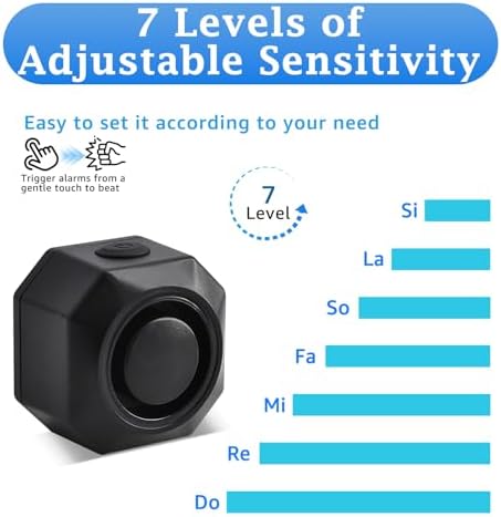- 【7 Levels Adjustable Sensitivity and IP65 Waterproof】The 7 levels of sensitivity adjustable from gentle touch to push or beat, you can be easily set by the remote according to your needs. You also can customize the alarm to detect only significant movements, reducing the risk of false alarms. Wireless bike alarm is rated IP65 waterproof, very suitable for bad weather and outdoor use. This makes it ideal for use in all weather conditions, ensuring reliable operation even when it's raining.