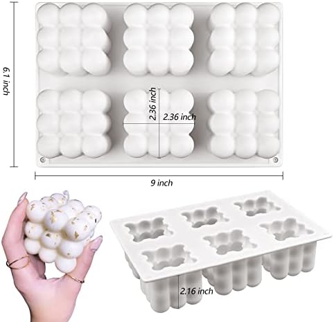 Moldes de Vela de Burbuja 3D - Molde de Silicona de Cubo de Burbuja de 6 Cavidades para Velas, Hacer Jabón, Molde de Pastel de Burbuja para Hornear Mousse de Pastel, Gelatina, Helado