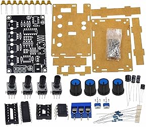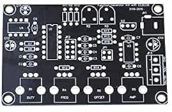 - All the Frequency Signal Generator Uses ICL8038 and high-speed op amp, higher accuracy, are through hole components, easy to install. Signal Generator Supports dual power amplifier without blocking the capacitor to ensure high and low frequency signal distortion. Frequency Range is 5Hz~400kHz, and the Duty Cycle Range is 2~95%, which is Adjustable. Frequency adjustment of Low Frequency Signal Generator features coarse tuning and fine tuning. Features Signal generator -Color:black. -Material:FR4 ; Acrylic. Supply Voltage: 12V~15V Frequency Range: 5Hz~400KHz(Adjustable) Duty Cycle Range: 2~95%(Adjustable) Low Distortion Sine Wave: 1% Low Temperature Drift: 50ppm / C Output Triangular Wave Linearity: 0.1% DC Bias Range: -7.5V~7.5V Output Amplitude Range: 0.1V~11VPP(operating voltage 12V) Package Including 1 * Signal Generator DIY Kit