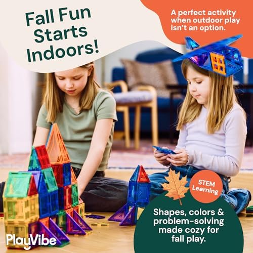 PLAYVIBE Magnet Tiles 60 Piezas - Juguetes Magnéticos 3D para Niños 3+ - Bloques de Construcción STEM - Aprendizaje Esencial para Niños Pequeños para Hogar y Aula, Niños y Niñas - Juguetes Sensoriales - Bloques Magnéticos