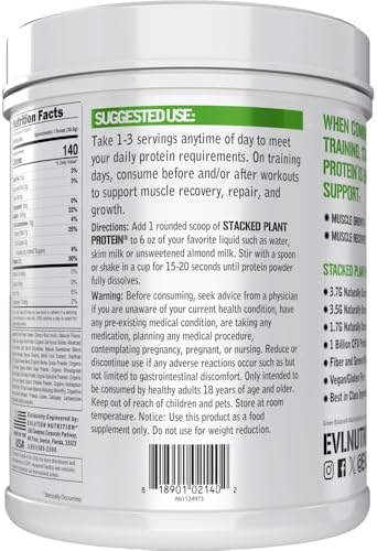 - Plant Based Protein: Each serving of Stacked Plant Protein is packed with 20 grams of an all-in-one plant-based protein complex that gives you the nutrient-rich fuel you need to thrive, whether you’re at the gym or on-the-go.