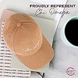 SOFT 11-WALE CORDUROY - Sorority Shop's Chi Omega baseball caps are developed from soft 11-wale corduroy, 100% cotton material. Breathable and stylish, this cap will be perfect for any season. EMBROIDERED LOGO - Our baseball hats are a must-have for all sorority sisters. The embroidered Greek letters will make you stand out in the crowd and will get heads turning wherever you go! FITS MOST - The Chi Omega women baseball cap is the perfect accessory to complete your outfit! Made of premium-grade cotton, these adjustable caps come in one size fits most. 21" - 24" Inner Circumference CLASSY ADJUSTABLE CLOSURE - These classic Sorority caps for women have an adjustable buckle closures that can fit most heads and provide a fashionable look you'll love all year long. IDEAL GIFT - The CO sorority corduroy baseball hat is the perfect gift for any occasion or just because you want to show your support. The quality is excellent, the design simple but stylish, and you get to express your sorority pride!