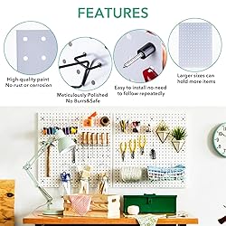 - Features: Metal Pegboard Wall Mount Display Pegboard Wall Panel Kits: The newly designed DIY white pegboard wall is suitable for garages, kitchens, and offices. It is an excellent space-saving pegboard accessory organizer. It has a variety of installation methods, is easy to install, durable, and saves money. We offer an unparalleled level of quality and craftsmanship for white wall-mounted panels. Wall Control Wall Panels offer superior construction and feature a completely flush installation with the wall surface. Practical and Reasonable Design: Make full use of your wall space and make your home look empty and tidy. Home Accessories Storage: Suitable for storing tools, parts, keys, handicrafts, office supplies, and small plant light items, the pegboard makes it easy for you to find items at a glance. Widely Used: Ideal for installing in your garage, office, workspace, shop, home, kitchen for hanging and storing small items, you can hang the appropriate pegboard hooks, baskets, cups, bins, etc. to better organize your space. Installation methods: 1. Drilling installation method: we provide 8 screws and 8 shims, 8 washer mounting kits, and use an electric drill to install on the wall, which is more firm. Specification: Material: Metal Size: 15.7 x 11.8 inches color: White Package Included: 2 Pcs pegboard wall 24 Mounting kits (screws, washers)