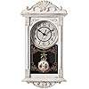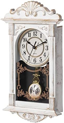 Clockswise Vintage Grandfather-Style Wall Clock with Wood-Effect Plastic Pendulum, Battery-Operated - for Home Decor, Living Room, Home Office, Kitchen or Dining Room (White, 16 Inch)