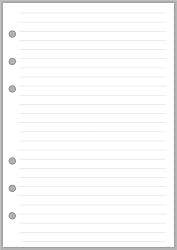 PLANNER PAGE SIZES CAN BE CONFUSING. PLEASE CHECK THE PRODUCT IMAGES FOR A PAGE SIZE COMPARISON TO BE SURE THIS ITEM WILL FIT YOUR NOTEBOOK. Simple lined notes pages for Personal-Wide sized notebooks. Punched with 2 groups of 3 holes spaced 3/4" (19mm) with 2" (51mm) between the groups to fit Personal-Wide sized notebooks . 50 sheets per pack Page size is 4.75" x 6.75". Printed on very high quality heavy weight paper (120 gsm), with a silky smooth writing surface.