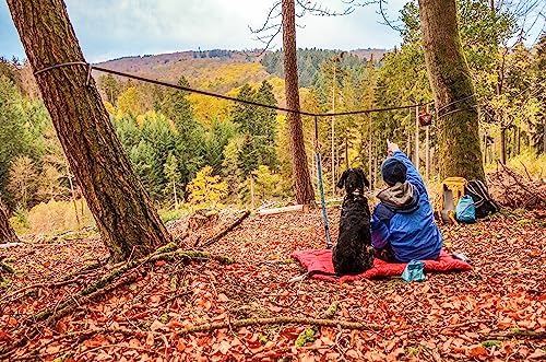 Kurgo Ridgeline Dog Tie Out for Camping,Outdoor Dog Run Zipline,Portable Camp Gear Line,Includes-Carry Pouch,30 ft Tree-Friendly Line,4 S-Clips,and Swivel Bungee Tether for Leash Attachment,Gray