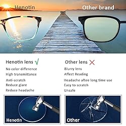 Light Material Frame : Lightweight Square Frames with adjustable reinforced Spring Hinges and One-Piece Nose Pads provide durability, Flexibility and comfort for long-term wearing, it also fits perfectly and look good on any face. REDUCE EYESTRAIN - Enjoy your digital time, NO worry about eye fatigue, blurred vision and headache. ANTI BLUE LIGHT - Block 90% of harmful blue light. Relieving eye fatigue, dry and vision falling. BETTER SLEEP - Reduce eye strain and headache, so you can enjoy a restful deeper sleep WHY CHOSSE HENOTIN - In case of any broken issues,please contact us without hesitation. We will provide the best service until you are satisfied. You have no risk to try!