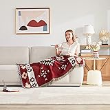 Touchat Native American Blanket Boho Throw Blanket for Sofa and Bed, Mexican Decorative Farmhouse Blanket, Southwest Decor Woven Blankets, Aztec Throw Blankets Bohemian with Tassel(Wine,50×60 inch)