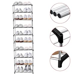 Easy peasy assembly, you only need to attach the tubes into the plastic connectors, and then that’s it. Stackable space saving design, Stack multiple units for more storage in the same footprint. It works in various locations such as the dormitory, bathroom, and doorway for the storage of shoes, bags, and more. This shelves fit boots, high heels or slippers and Stores up to 8-10 pairs of shoes. Material:Plastic and galvanized pipe, Size: 17.2×10.3×61.8 inch