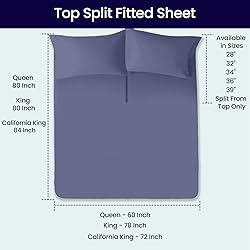 Perfect Fit for Split Top Adjustable Beds: Designed for Top Split Head Flex adjustable beds, this fitted sheet features a 32" inch split from the top for independent side adjustments. the fully elasticized sheet ensures a secure fit and easy use with durable elastic around the entire bed. Luxury & Cooling Sheet Set: Experience the luxury of SGI Bedding Top split sheets, crafted with a Bio polishing method for unmatched softness and comfort. The Split Head Flex Sheet Set for Adjustable bed includes: 1 Split Head Flex King Fitted Sheet: 78" x 80", split 32" from the top, 1 King Flat Sheet: 108" x 102", 2 King Pillowcases: 20" x 40" Unmatched Durability & Comfort: Our Top Split adjustable bed sheets are made with quality long staple yarns and advanced weaving techniques for lasting durability. Enjoy a comfortable and refreshing night's sleep for years to come. Elevate Your Sleep with Customized Comfort: Our top split flex head sheets for adjustable beds offer a variety of colors, sizes, and patterns, ensuring the perfect fit for split king or flex top king beds. Personalize your bedroom decor and create the ultimate sleep sanctuary for you and your partner. Easy Maintenance: Easy Care Tips Machine wash warm, tumble dry low, avoid bleach. For adjustable dryers, use medium settings. Remove before fully dry, fold gently, iron if necessary.