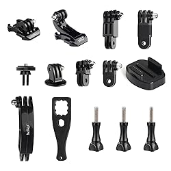 Replacement and Spare Mounts: This grab bag of mounts for GoPro helps you have more mounting options. You could use these mounts as a resource for spare or replacement parts of your GoPro accessories Variety of Uses: These basic and universal mounts are designed for GoPro cameras. Hold your camera tight and stable, attach your GoPro to other equipment and help you capture wonderful moments with those mounts for GoPro. Perfect for skiing, mountain biking, motocross, water sports, climbing and other action sports Compatibility: HSU basic adapter set compatible with all GoPro cameras, GoPro Hero 13 Black, Hero 12 Black, Hero 11 Black, Hero 10 Black, Hero 9 Black, GoPro Hero 8 Black, Hero 2018, Hero7, Hero6, Hero5, Hero4, Hero3+, Hero3, Session, Fusion Max, etc High Quality: Made of high quality ABS plastic material, more durable. Free reissue if there is any quality problem within one year Grab bag included: 1 x quick release buckle mount, 1 x J-hook buckle mount, 1 x tripod mount, 1 x 1/4 inch 20 mount, 1 x quick release tripod mount, 1 x curved extension, 1 x long same direction pivot arms mount, 1 x short same direction pivot arms mount, 1 x long vertical direction pivot arms mount, 1 x short vertical direction pivot arms mount, 3 x long thumbscrew, 1 x wrench