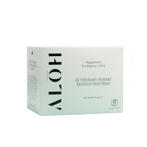 ALŌH Skin - Softening Sanitizing Hand Wipes – Peppermint + Eucalyptus Aloe (1 Box of 20 Individually Wrapped Wipes)