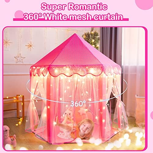 Princess Tent for Girls Unicorn Fairy Castle Play Tents for Kids Toddler, Hexagon Kids Playhouse with Gift Box, Princess Toys & Gift for Girls Aged 3+ for Indoor & Outdoor(Pink Tent with Mat)