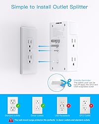 【9 in 1 Surge Protector with USB C】- The outlet extender is fit duplex outlet perfectly, just plug in to use. You will get 5 AC outlets with the wide space in between and 4 USB ports(2 USB C), the screw at the middle and the plastic prong on back for fixing duplex outlet, you don't worry about falling off. The outlet splitter can charge up to 9 electric devices at same time, is a perfect electrical equipment for your different needs. 【1680J Surge Protector Outlet】- This wall outlet extender with minimum energy-absorbing capacity of 1680 Joules, is much more quickly and reliably than other wall surge protector outlet circuit, ensure your devices are protected. (the indicator light on to show your devices are protected) 【Multi Plug Wall Outlet 】- The plug extender total output of 4 USB ports is 5V/3.1A. Built in smart technology, the multi plug outlet can auto-detect charged devices and deliver optimum charging speed up to 5V/2.4A (max) each port, USB-C up to 3A.( Please note The UCB-C port is not Quick Charger 3.0, doesn't support any other devices which need 9~22V charging voltage.) 【Widely Spaced Outlets】- This plug extender with 1.78 inches long space in between, larger than standard 1.5-inch socket. Larger spacing will not block other adapter, it easier to use for all kinds of equipment. 【Safety Guaranteed & After Sale Service】 - Certified by ETL. The usb wall charger is made of fire-resistant ABS shell (1382℉). High-quality component can improve durability and safety. One Beat provides 30 days return, 12-month replacement. 24h customer service supported.