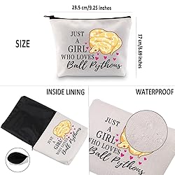 Multi-function: 23.5 cm ( 9.25 inches ) * 17 cm ( 6.69 inches) makeup case have large space to storage your makeups and cosmetic accessories, like lipstick, makeup brushes, eye shadow, makeup palettes etc. It can use as make up pouch, toiletry case, pencil pouch or hold any small things you like in your daily life. Material and Quality: the Ball Python Bags are made of canvas fabric, the zipper is smooth and easy to use, durable and portable. It's easy to clean, so you don't need to worry about the color transfer of makeup residual stains. Bag with saying: Just A Girl Who Loves Ball Pythons. Special design can highlight your personal character and taste easily. Meaningful Gifts: These cute Ball Python Design bag makes a nice gift for Ball Python lovers who want to show their love for their favorite spirit animal. Great for Ball Python fans, nature lovers, snake owners and enthusiasts, herpetologists, or anyone who loves a funny design. Perfect as a Birthday gift, Christmas present, or just to show how much you care! This funny inexpensive gift idea makes the perfect choice for putting a smile on their face. The perfect pouch to keep all your make-up and bits & bobs safe. Ideal for every travel if you like to have all your accessories with you. Ideal for travel, vacation, business trip, gym and so on. With it you can do your makeup anywhere.