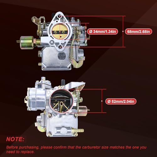 - ✅Especificaciones: Carburetador 34 Pict 3 para VW tamaño: Distancia de los agujeros de perno: 68mm(2.68 pulgadas), Montaje de entrada: 34mm(1.3 pulgadas), Ancho: 73mm(2.87 pulgadas), Tamaño de Venturi: 26mm(1.02 pulgadas).