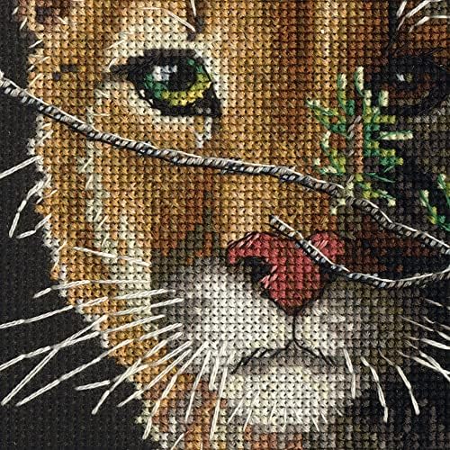 - A curious feline watches through the foliage in this counted cross stitch set from Dimensions.