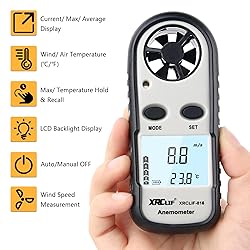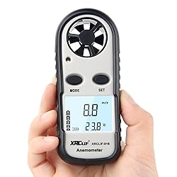 MULTIFUNCTION WIND METER: designed to measure wind speed (0-30 m/s, 0-5860 ft/min, 0-55 knots, 0-90 km/hr, 0-65 mph) with 12 level beaufort scales, and detect air temperature ( 14°F and 113°F), easy to switch ℃/℉ units by press the button with no tools, support wind chill indication, display Max/ Average/ Current air velocity on LCD screen in real time, more convenient than 2 buttons anemometer EASY TO INSTALL BATTERY & USE: Remove off the yellow rubber protector cover, then open the battery door, it's more easier than other wind meter gauge. Put a CR2032 battery (included), turn on windspeed anemometer by press “Mode” for 2s to measure wind and analyze environment to do activities BACKLIGHT& AUTO/MANUAL SHUTDOWN: Press any keys to active the wind anemometer’s backlight last for 12 seconds, convenient to read at dark place, press “Mode” + “SET” simultaneously to turn off the wind meter, or no operation for 14 minutes it will auto shutoff MULTIPURPOSE WIND DETECTOR: This digital wind speed anemometer is perfect for industrial and home purposes, like measuring speed of HVAC velometer,air conditioner and temperature of CPU. The mini anemometer for sailing, shooting, hang-gliding, drone wind speed test, or power and manufacture industrial. HANDHELD ANEMOMETER: Wind speed thermometer is compact and light design, small enough to put into pockets, easy to carry and operation. Hand size wind speed tester with simple but detailed manual. Please don’t hesitate to contact us if you meet any question