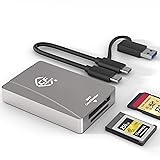 【Wide Compatibility】This CFexpress card reader compatible with CFexpress Type B and SD UHS-II memory card such as 32GB, 64GB, 120GB, 128GB, Max 2TB. Please NOTE: Doesn't support reading SD cards and CFexpress cards at the same time, inserting the SD card will automatically close the CFexpress card, please pull out the SD card 【10Gbps Super Speed Data Transfer】USB 3.1 Gen 2 technology supports maximum transfer speed up to 10Gbps(1250MB/s), support Cfexpress memory card read and write high-resolution photos, full HD videos from your CFexpress card quickly. Backward compatible USB 3.1 Gen 1 and USB 3.0 【Plug & Play, Installation Free Driver】This CFexpress SD Card Reader with Plug & play design, hot-swapping capability, no driver installation is required.Compatible with Android, Windows XP/Vista/7/8/8.1/10, Mac OS X, Mac Air, computer, PC, laptop etc. Supports NTFS/EXT4/FAT32/EXFAT etc. disk format 【Portable Aluminum Design】Aluminum alloy material, compact portable design could save space , easy and convenient to carry, high-end fashion appearance and fast heat dissipation makes the CFexpress reader high quality and more durable 【What We Offer】1 x Card reader CFexpress, 1 x 2-in-1 USB Cable(USB-A TO C Cable or USB-C TO C Cable), 1 x User Manual, 2-year's warranty and 24 hours friendly customer service. Please feel free to contact us at any time.