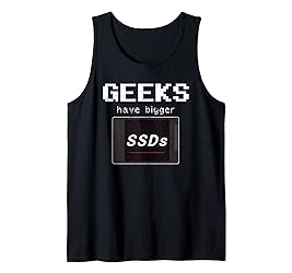 - This Geeks Have Bigger SSDs Computer Design shows one big depiction of an SSD hard drive and a quirky, ambiguous joke. For all the hot but intelligent men, to show off their masculinity. Funny pun to say "Mine is bigger" in a nerdy way at the next programmer meeting or LAN party. Gift idea for your Computer Science study colleague or the system admin at your office.