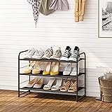3 TIER SHOE RACK:Stores up 9-12 pairs of shoes for men, women, additional bottom storage for slippers, Allow extra storage which can hold sundries in your kitchen, living room Multifunctional:In the living room, the shelves can hold sundries,Put it in the closet and keep the clothes neat, Make the utility room looks cleaner STACKABLE EXPANABLE:Include 4 connectors and stack up to multiple units that maximizes storage space in the same footprint, or bridged horizontally to expand the unit Purchase 2 and more units to build horizontally and vertically storage ADJUSTABLE TIER HEIGH:Easy assembly Simple clip the shelves into the frame, You can easily adjust the height of shelves accommodates different sizes of shoes. Even the High Boots, you can store it easy STURDY DURABILITY:Made of thickened metal tube with power coated finish which is smooth and with strong corrosion resistance, Simple structure design makes it very easy to assemble