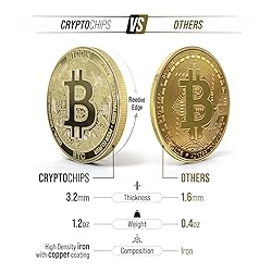 Designed by Cryptochips in Seattle, WA. A group of crypto enthusiasts dedicated to bring you the highest quality physical crypto coins on the market. Heavy Feel – Each coin is constructed using a high-density iron which gives the coin its signature weight. Shining Bright – Each coin is coated with a thin copper layer before applying our custom PVD treatment to give each Cryptochip a nice and shiny finish. Custom Designs – We partner with the best crypto and NFT artists to design our original designs for Bitcoin, Ethereum, Cardano, XRP, Polkadot, Chainlink, VeChain, Uniswap, SHIBA, Solana, Polygon, and many more. Amazon Limited Time Sale– To celebrate our launch of our crypto coins we are including 2 Bitcoin Stickers with each order