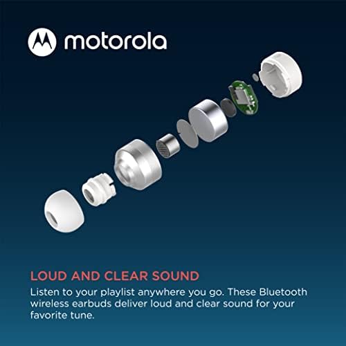 - AUTÉNTICOS AURICULARES INALÁMBRICOS: los auriculares inalámbricos Motorola combinan un sonido superior con una batería de larga duración en un diseño ergonómico y compacto. Estos asequibles auriculares resistentes al agua con un total de 17 horas de reproducción ofrecen llamadas con manos libres y controles táctiles.