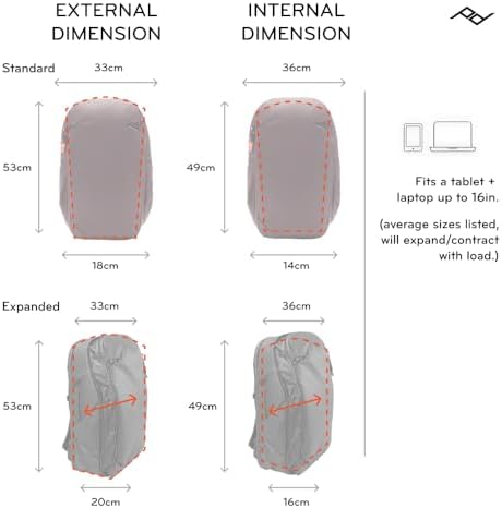 - DESIGNED TO ADAPT: Expandable from 27L to 33L, this carry on approved pack adjusts to fit your load. Side pockets expand to hold bottles or tripods, while a large rear hatch and subdivided top pocket keep your essentials organized and easy to reach.