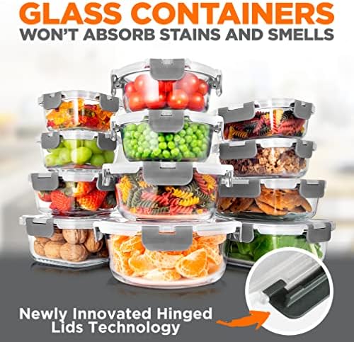 - 24-PIECE SET: The glass food containers set comes with 24 containers ranging from 11 oz to 35 oz capacity with lids for meal prep, food storage, and leftovers. The containers are oven, microwave & freezer-safe. Shapes are rectangle, square, and round