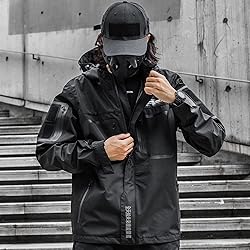 - This jacket has 95% polyester material with pure black appearance. The jacket comes feature long sleeves, velcro on the sleeves, adjustable drawstrings on hem and hood. Great for a casual look with denim jeans, pants. The jacket was inspired by the hip-hop culture arising in the urban spotlight. The functional work jacket features with some pockets with laser printed reflective tapes give it a unique eye-catching appearance. The This is a direct call to the growing urban context in our cities today. Our products are designed based on Asian streetwear and fashion in Chinese and Japanese culture. It combines hip-hop style with high-quality materials to create a stylish and comfortable lineup that stands out from the crowd. Our mission is to make hype beast clothing that captures urban movement while providing high quality and affordable prices. This product is machine washable. Dry on low heat.