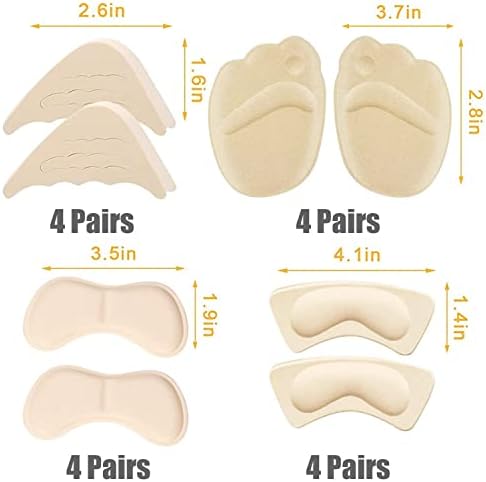 - Paquete Incluye: 8 pares *Forros de Talón, 4 pares de relleno de espuma para la punta aplicado para llenar la punta de los zapatos de tacón alto y 4 pares de almohadilla de antepié, incluyendo negro y beige, una combinación agradable para satisfacer sus diferentes necesidades