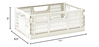3 Sprouts Recycled Plastic Collapsible Crate - Stackable Folding Storage Crate for Organization for Adults & Kids - Foldable Plastic Crate - Medium - Cream