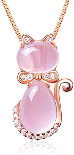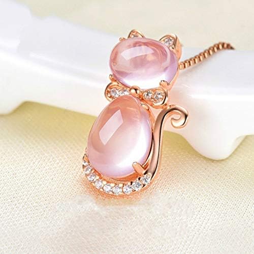 Necklace Chain for Women Girls, Elegant Women Rhinestone Faux Opal Cat Pendant Necklace Long Chain Party Jewelry Pendant Necklace for Valentine's Day Gift Birthday Present